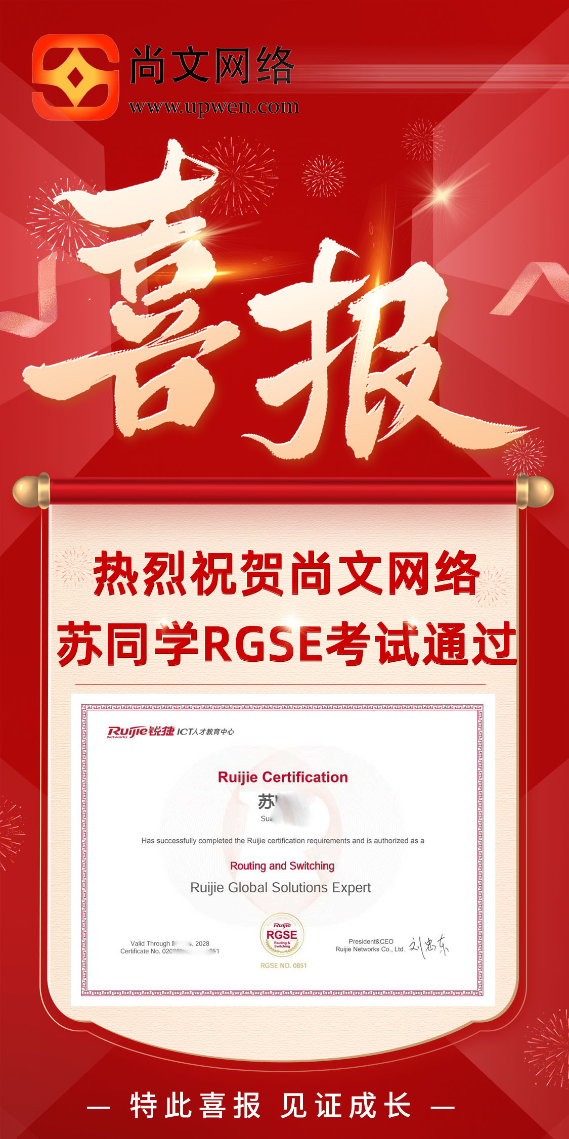 尚文网络RGSE LAB 通过】祝贺苏同学RGSE LAB考试通过!