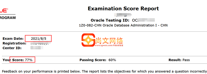 OCP考试:8.5号ORACLE 19C(082)考试通过!