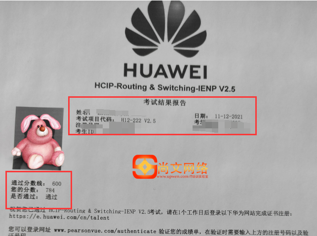 11.12号HCIP考试-222考试通过!【尚文网络UPWEN】