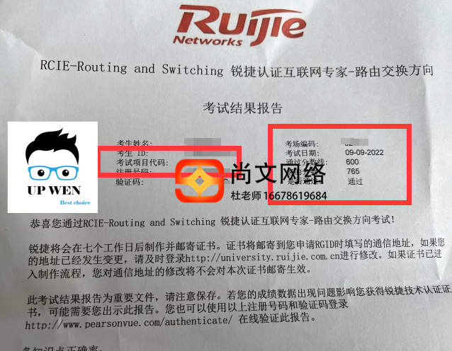 9.13锐捷RCIE考试通过!655分
