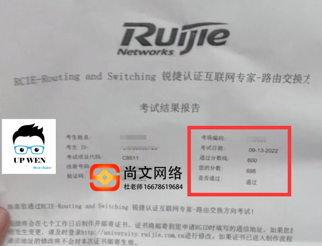 9.9锐捷RCIE考试PASS!冲击TOP100