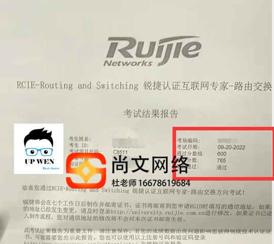 9.20锐捷RCIE考试通过765分!