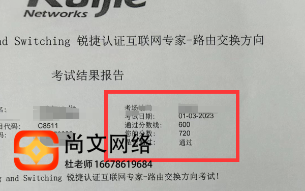 锐捷RCIE考试通过!恭喜720分【尚文网络】