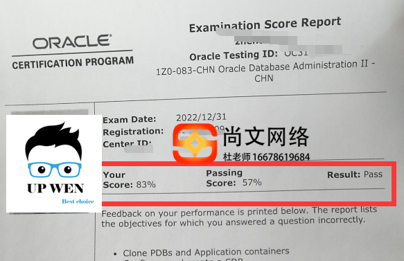 ORACLE数据库OCP考试通过2023年稳定【尚文网络】