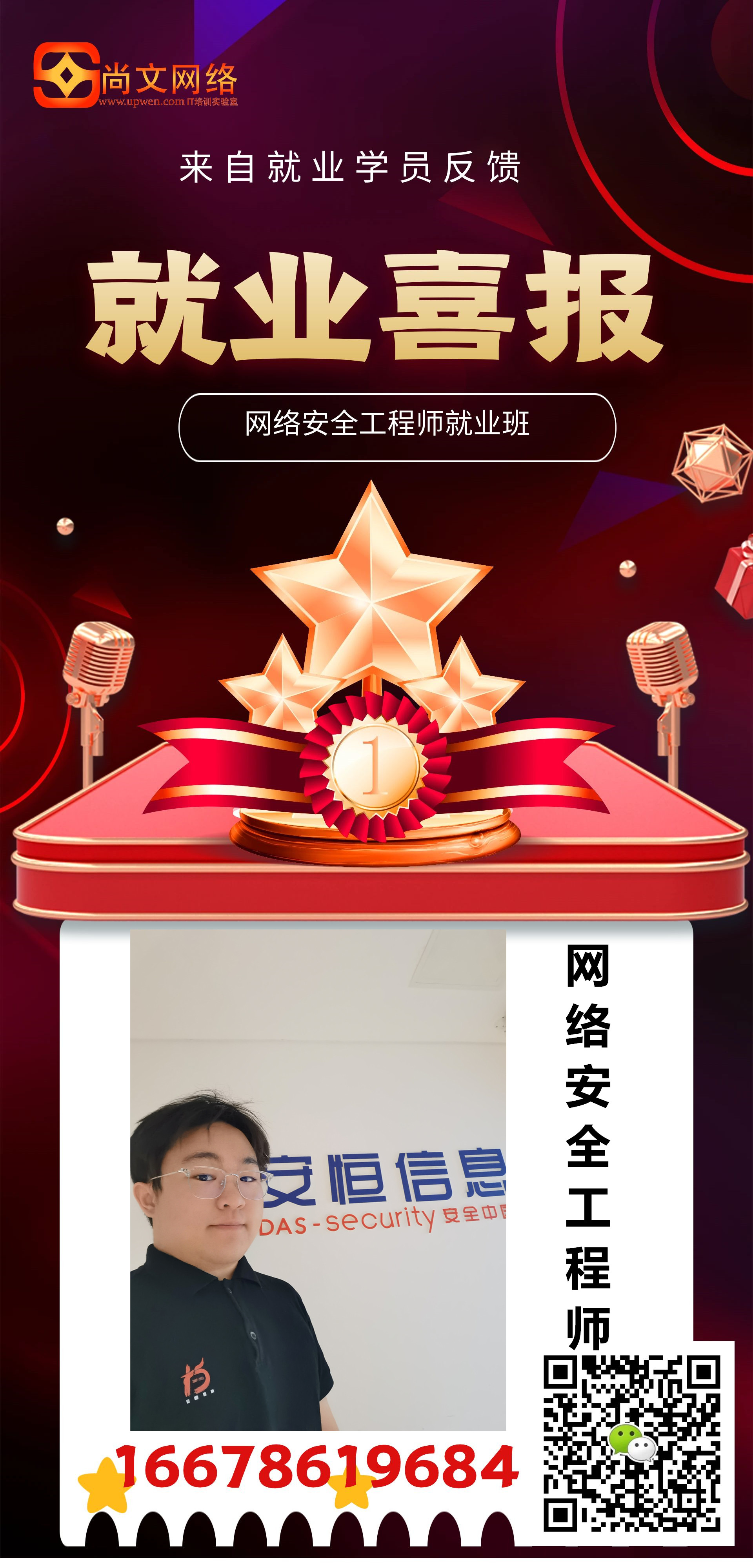 就业喜报:网络安全就业班周同学入职安全厂商恭喜!