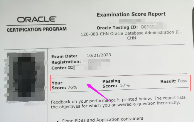 10.21号ORACLE 数据库OCP083考试通过