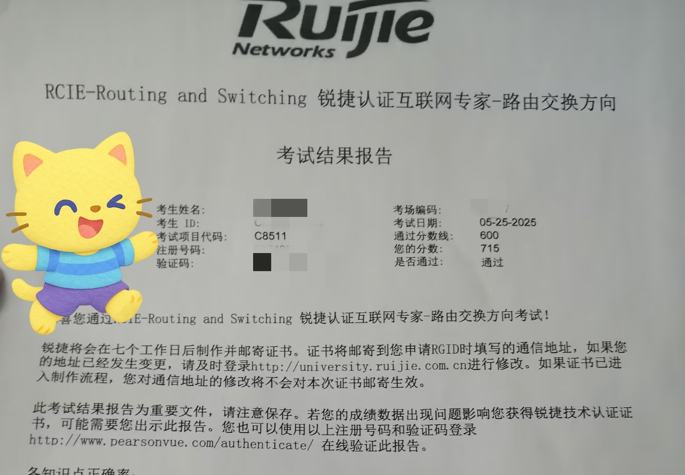 5.25号锐捷RCIE笔试考试通过!!!