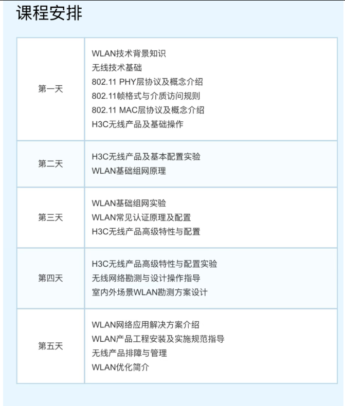 熟悉WLAN技术体系与理论及802.11相关协议熟练掌握WLAN相关设备特性与应用