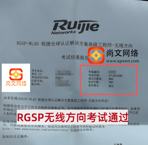 1.29锐捷认证RGSP无线方向考试通过,恭喜学员