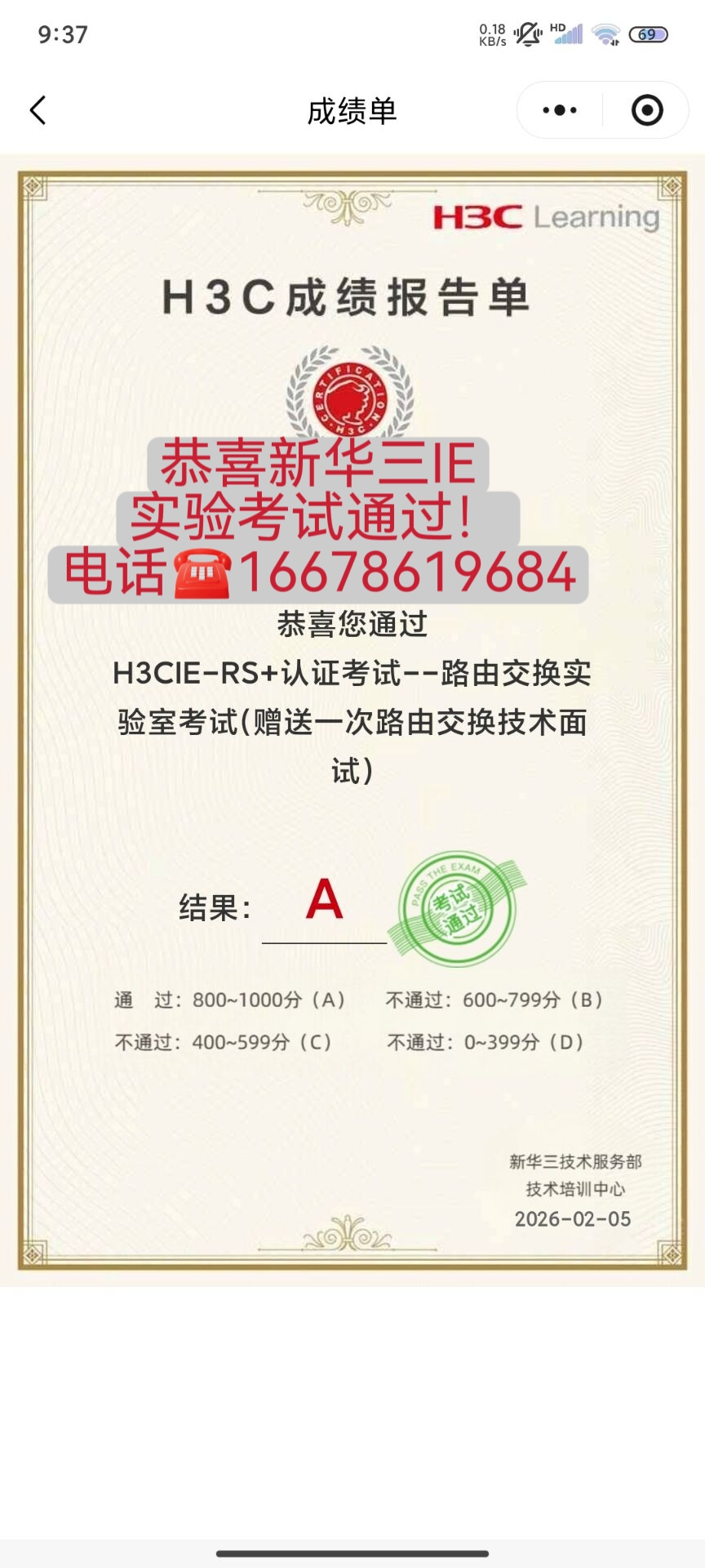 2026.2月新华三IE实验考试通过!恭喜尚文网络学员