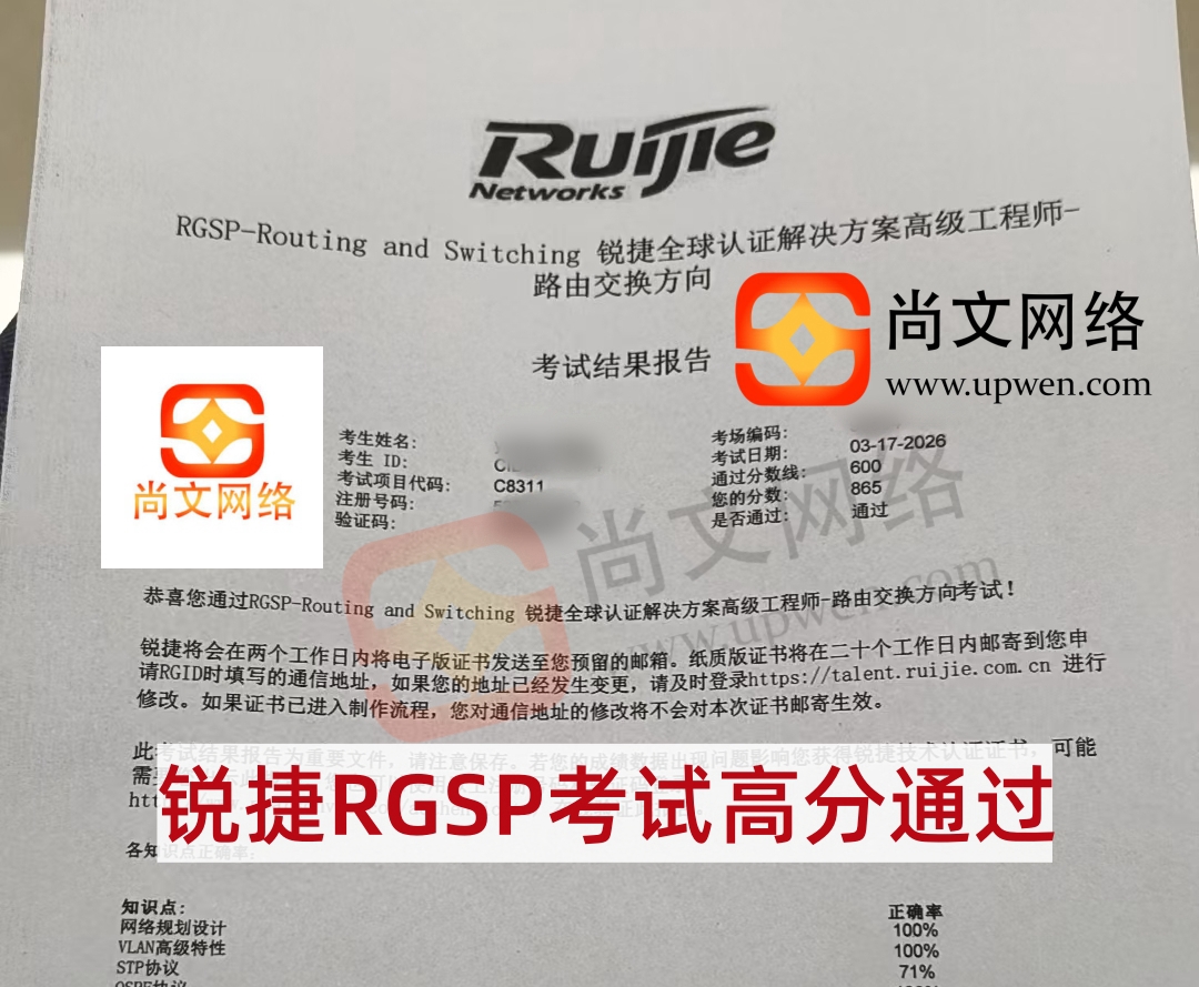 3.17考试战报-恭喜学员锐捷RGSP考试高分通过-865