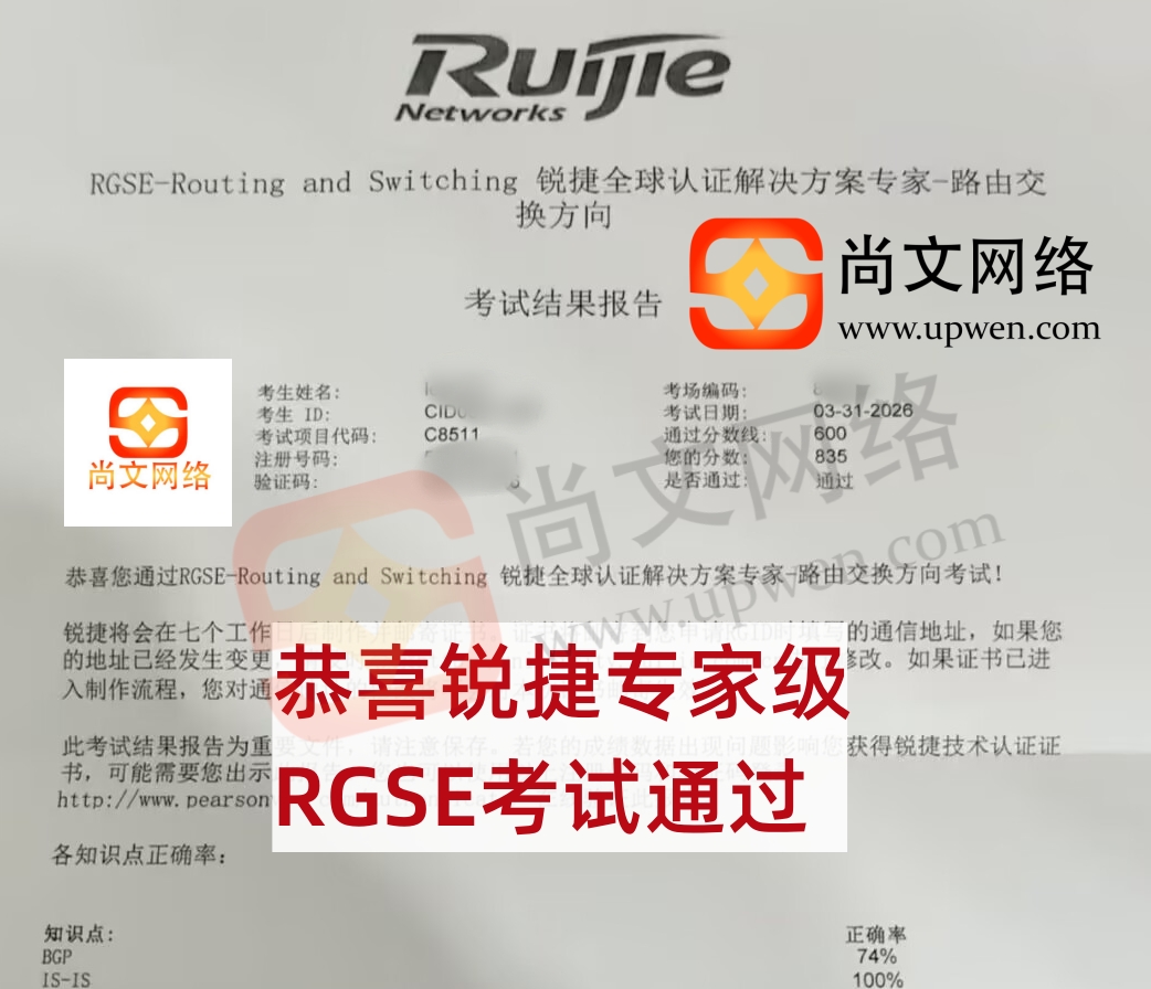 3月31日战报-恭喜学员锐捷专家级RGSE考试835高分通过